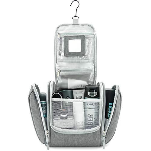 - ORGANIZADOR EFICIENTE - Ya sea hombre o mujer, la bolsa de aseo es tan grande y espaciosa que todos los artículos voluminosos de la farmacia como espuma de afeitar grande o latas de spray para el cabello caben en ella. La forma inteligente de la bolsa no ocupa más espacio del necesario en su maleta, carro, bolsa de viaje o equipaje de mano.