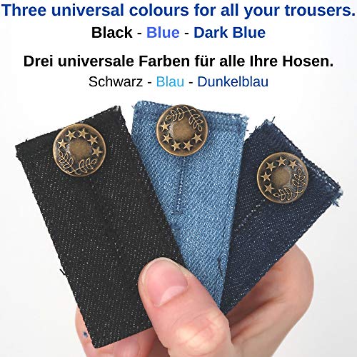 - ✅ [VOLUMEN DE SUMINISTRO] 6 x botón extensor de extensión de pantalones, 100% algodón en negro, azul oscuro, azul claro, puede ser usado como extensión de pantalones para el embarazo.