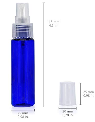 MyGadget Juego de 4 Botellas de Spray Vacías (30 ml) - Recipientes de Plástico Rellenables para Desmaquillante Aceites Esenciales Perfume Agua - Azul Oscuro