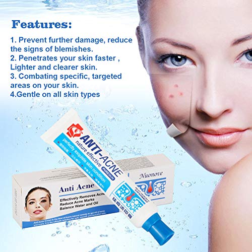 Crema Antiacne, Acné Crema, Acne Tratamiento, Reducir los Puntos negros, Equilibrar el Agua y el Aceite, la Crema Contra el Acné Espinilla Regenera la piel, 30 g