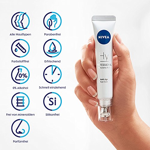 NIVEA PROFESSIONAL Ácido hialurónico, crema de ojos antiarrugas, crema antiedad para contorno de ojos con aplicador, crema reparadora para reducir líneas de expresión y patas de gallo, 1 x 15 ml
