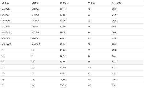 - Los tamaños de la suela son Estados Unidos. La etiqueta muestra el reino unido. M = hombres W = mujeres