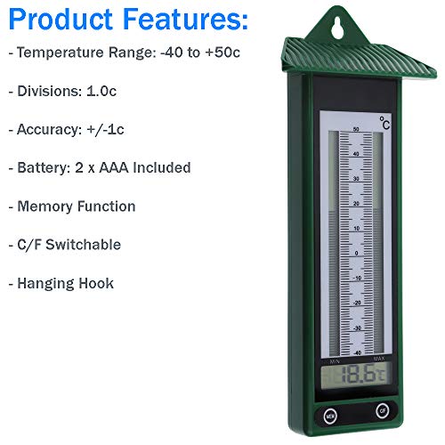 - ¡Genial como un gardín de este ambientador! - Apto para uso en exteriores, este termómetro de pared exterior es fácil de colgar en cualquier lugar en el jardín o invernadero.