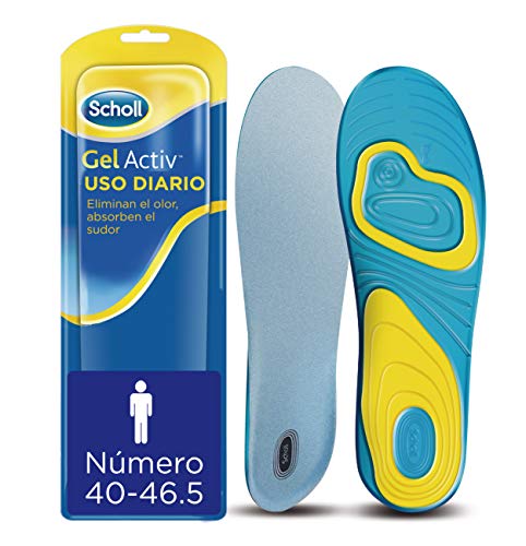 Scholl Plantillas Gel Activ Uso Diario para hombre, para el dia a dia, mayor comodidad y absorción del olor y sudor, talla 40 - 46.5, 1 par (2 plantillas)
