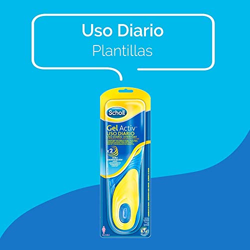 Scholl Plantillas Gel Activ Uso Diario para mujer, para el dia a dia, mayor comodidad y absorción del olor y sudor, talla 35.5 - 40.5, 1 par (2 plantillas)