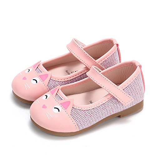 ✿ Harpily Zapatos Niñas Carnaval, Zapatillas Princesa NiñA Dibujo De Gato Sandalias De Vestido Flat Shoes Bailarinas Princesa Zapatos con Tacón para CumpleañOs Fiesta Cosplay Rosa 21