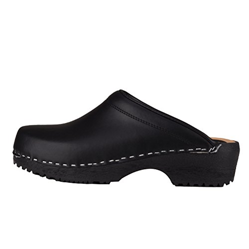 Vollsjo Zuecos De Cuero Genuino Madera Hechos En La UE, Negro,37