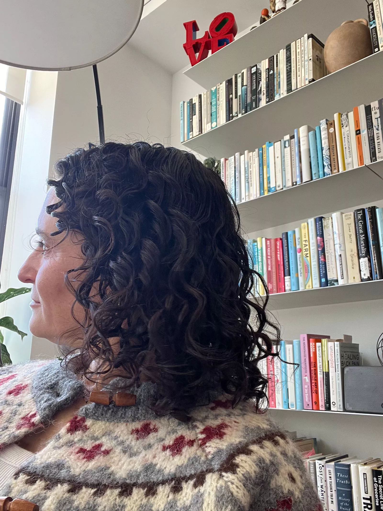 No es sorprendente que mi rebelión capilar (¿resurrección?) llegara a la mitad de la vida, un momento en el que muchos aspectos de mi identidad ya están en flujo. Mi cuerpo ha cambiado—y está cambiando, como si estuviera siendo reemplazado lentamente por una versión similar pero un poco menos cooperativa. Mi rol como madre está evolucionando a medida que mis hijos crecen y se vuelven más independientes. En medio de toda esta transición, recuperar mi textura capilar natural se siente como parte de una especie de reconciliación más amplia.