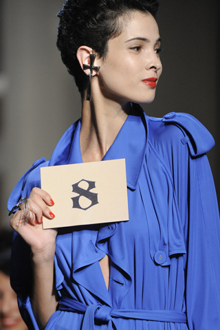 Las modelos iban cambiándose prácticamente a la vista de la audiencia y recorrían la pasarela con su número en la mano para identificar el look que llevaban. Para ponerte aún más en situación, ni música ni más sonido que la descripción en francés e inglés de lo que las modelos lucían.
