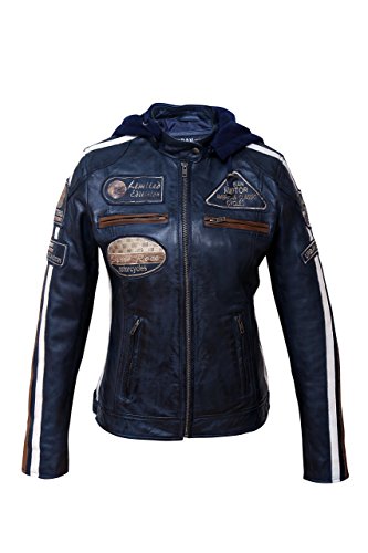 Chaqueta Moto Mujer de Cuero Urban Leather '58 LADIES', Cazadora Moto de Piel de Cordero, Armadura Removible para Espalda, Hombros y Codos Aprobada por la CE, Navy Azul, S (UR-176)