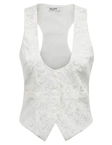 Chaleco Victoriano de Jacquard para Mujer Mediano Steampunk Blanco XL