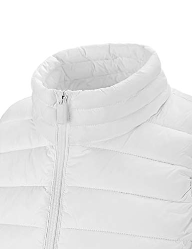 Mujer Collar de pie Chaleco Portátil de Plumón Ligero Acolchado Invierno Cálido Sin Mangas Abajo Chaqueta 3XL Blanco