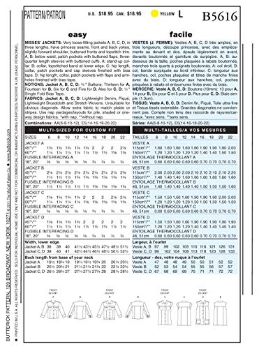 BUTTERICK B5354 - Patrón de Costura para Confeccionar Chaqueta y Chaleco de Mujer (4 diseños, Tallas 32-38, en inglés y alemán)
