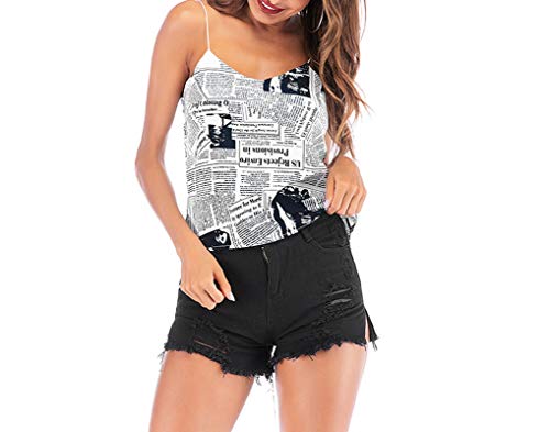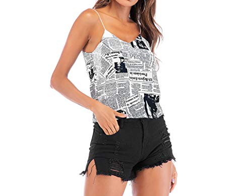 Chaleco sin Mangas con Cuello en V de Verano para Mujer con patrón de impresión de periódico de clavícula Moda Buen Partido