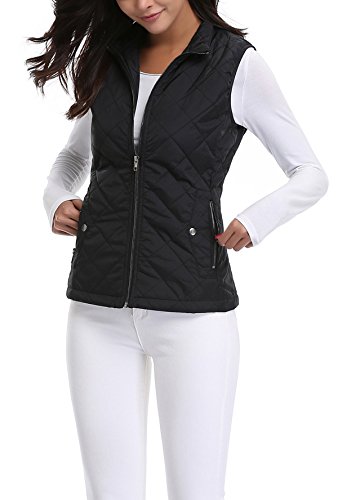 Allegra K Chaleco Acolchado para Mujer Cuello Alto Cremallera Frontal Bolsillos Inclinados Negro S