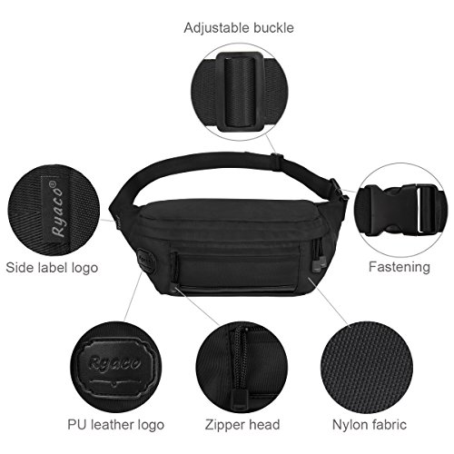Ryaco Riñoneras Deportivas, Riñoneras Running Hombre, Bolso de Cintura Viajar, Hípica, Golf, Acampada para iPhone X, 8, 8 Plus, 7, 7 Plus, Samsung Galaxy Note 8, S8, S8 Plus, Negro