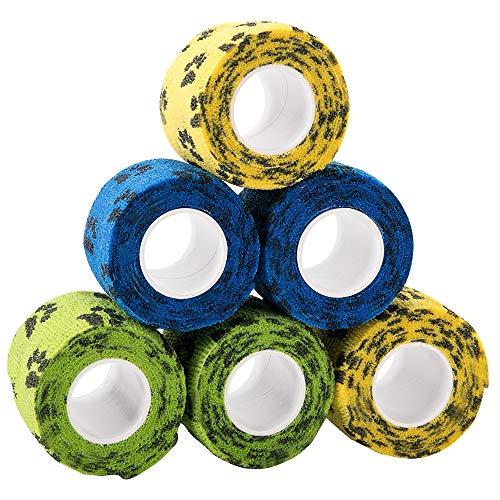 SlowTon Vendaje Autoadhesivo para Mascotas, 6 Rollos de Cinta para Mascotas Veterinaria, Rollos de Gasa cohesiva no Tejida para Perros, 2 Pulgadas x 5 Yardas Cada uno después de estirado