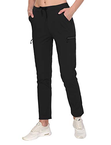 Little Donkey Andy Pantalones de tobillo ligeros de secado rápido para mujer, con cordón, para viajes, senderismo, L, A1. Negro.