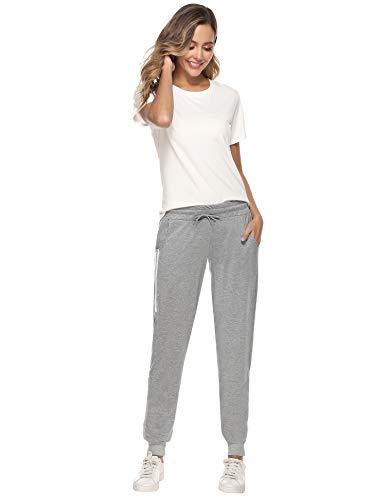 Aibrou Pantalones Chándal Raya Mujer Algodón Largos Pantalon para Deportivo Yoga Fitness Jogger Casual