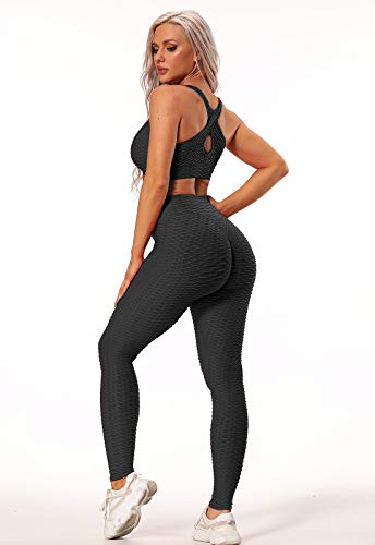FITTOO Leggings Push Up Mujer Mallas Pantalones Deportivos Alta Cintura Elásticos Yoga Fitness Negro M