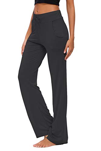 OURCAN Pantalones De Yoga para Mujer con Bolsillos Cordón De Pierna Ancha Salón Recto Suelto Pantalones De Entrenamiento De Entrenamiento Pantalones De Chándal Casuales Activos (Negro, L)