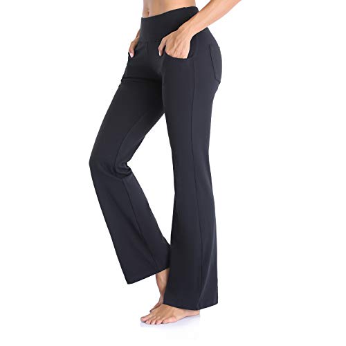 Vimbloom Pantalones de Yoga Bootcut para Mujer Largo Pata Anchos Pantalón de Piltes Cintura Alta Deportivos Leggins con Bolsillos para Yoga Fitness VI490 (Negro, M)