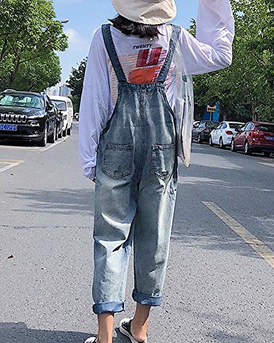 LaoZanA Mujer Mono Vaquero Pantalones Boyfriend Baggy Peto Jeans Azul Claro L