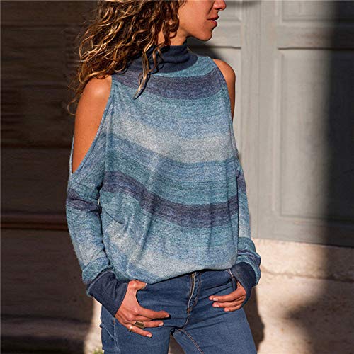 Sudadera para Mujer,Moda Manga Larga Casual Fuera del Hombro Sudaderas Cortos Cuello Redondo Jersey Mujer OtoƱo Primavera Blusa Tops Tumblr SuƩter Mujer Abrigo Deportiva vpass (Azul1, L)