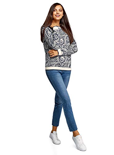 oodji Ultra Mujer Suéter Recto con Cuello Redondo, Azul, ES 38 / S