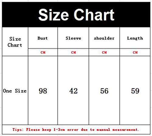 - One size=Bust:98 cm;Sleeve:42 cm;Length:59 cm