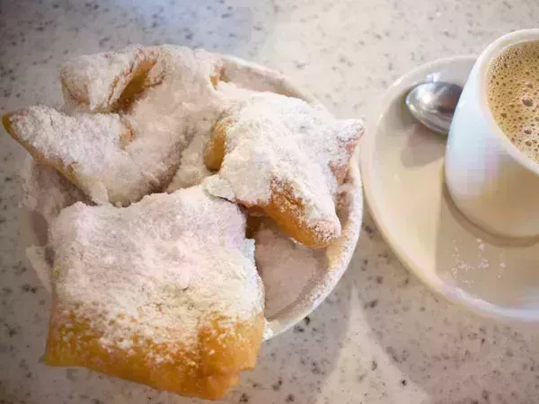 Los beignets son un pastelito frito que suele asociarse a Nueva Orleans y que se sirve con azúcar en polvo.