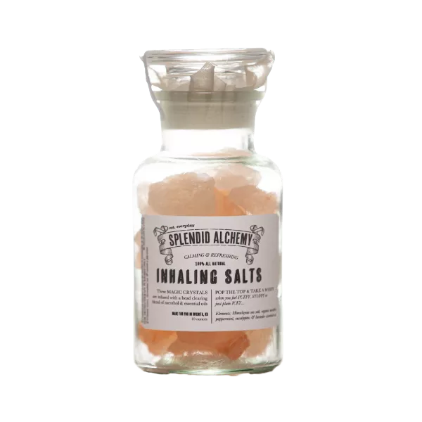 Nunca viajamos sin este pequeño frasco. Contiene cristales de sal del Himalaya con menta, lavanda, eucalipto y mentol orgánico, y una sola inhalación puede ayudar a despejar tu mente. También hemos encontrado que alivia las náuseas, ya sea por “mareo” o por “demasiado vino en la cena familiar”.
