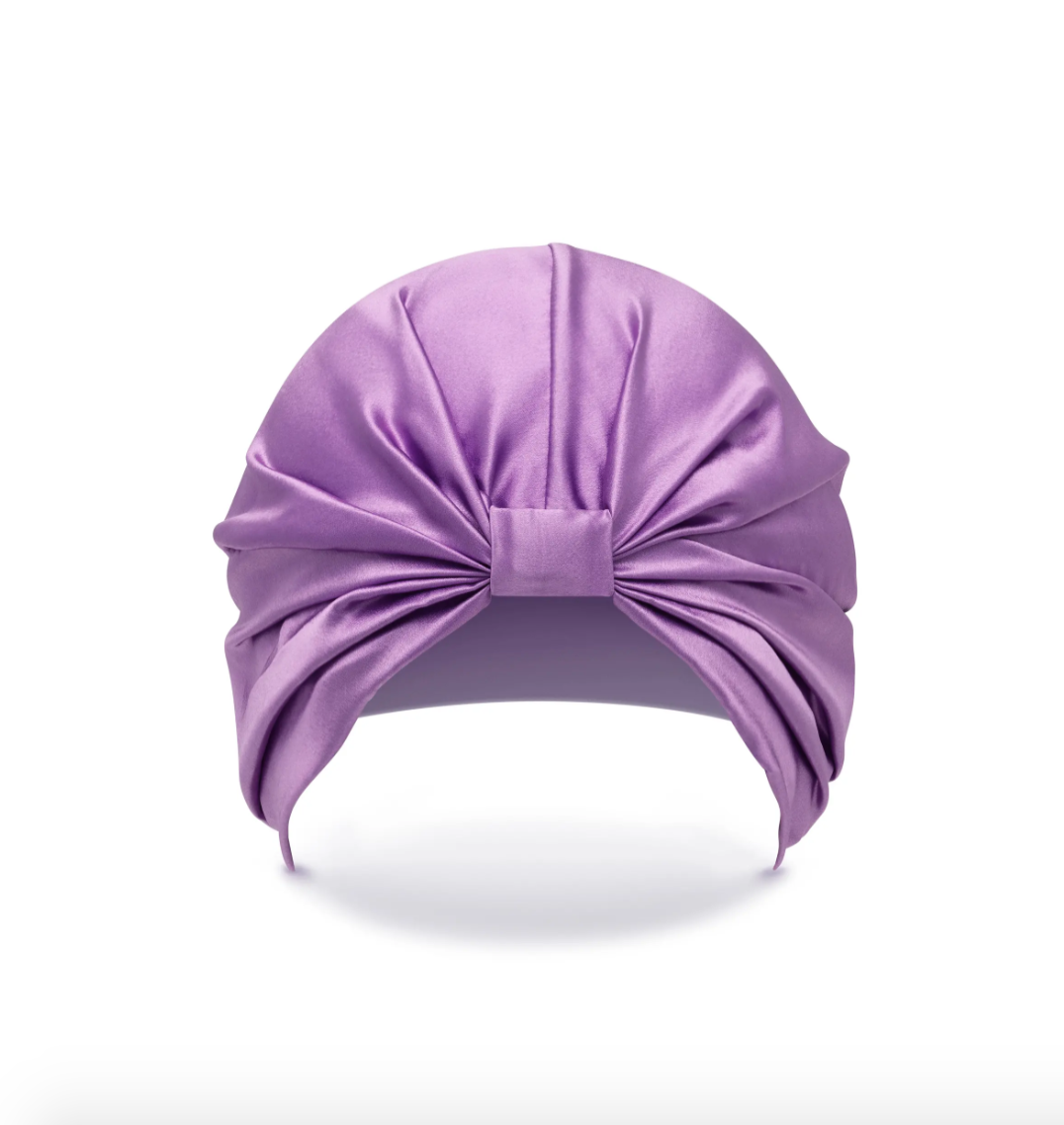 Gracias al nudo pre-atado, puedes ponerte este turbante forrado de satén y saltar a la cama o salir por la puerta.