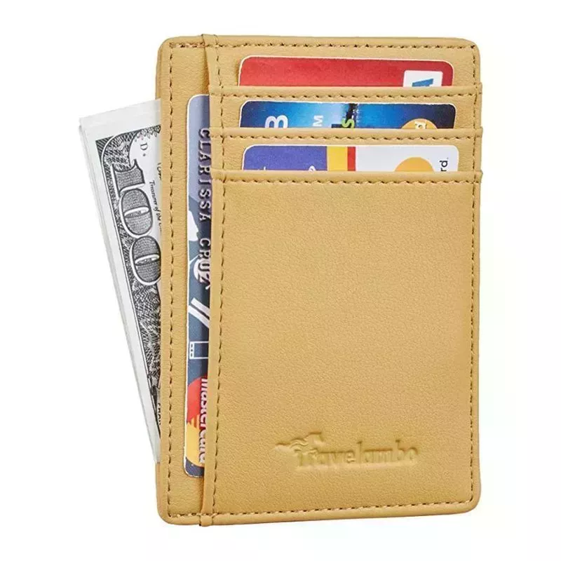 Travelambo Si no te gusta que te agobien las carteras voluminosas, te recomendamos que optes por ésta, con el espacio justo para guardar el DNI, la tarjeta de crédito y unos cuantos billetes de dólar.