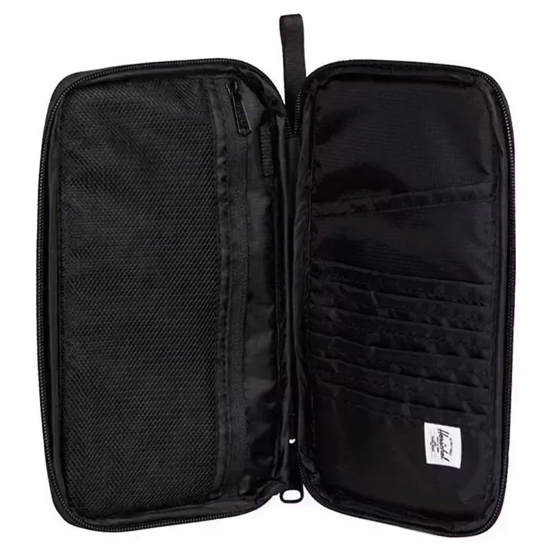 Herschel Viaja con estilo con esta duradera cartera fabricada en nailon que cuenta con un elegante cierre de cremallera. Asegura tu pasaporte, tarjeta de embarque, dinero en efectivo y tarjetas en este ligero número.