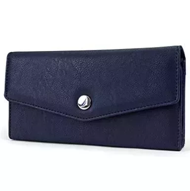 Nautica Esta elegante cartera tipo sobre tiene tecnología de bloqueo RFID que protegerá su dinero y la información privada que se almacena en el chip de sus tarjetas de crédito. Además, tiene espacio no sólo para las tarjetas y el dinero, sino también para el pasaporte.