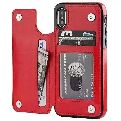 OT ONETOP Esta funda de teléfono tipo cartera, fabricada en piel de PU de alta calidad, tiene un práctico cierre a presión situado en la parte posterior del teléfono. También hay espacio para aproximadamente dos tarjetas, dinero en efectivo, e incluso su foto favorita.