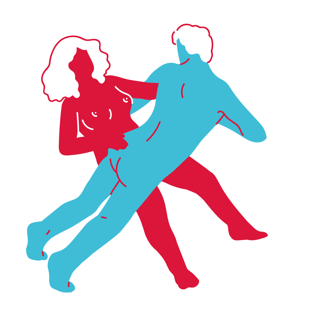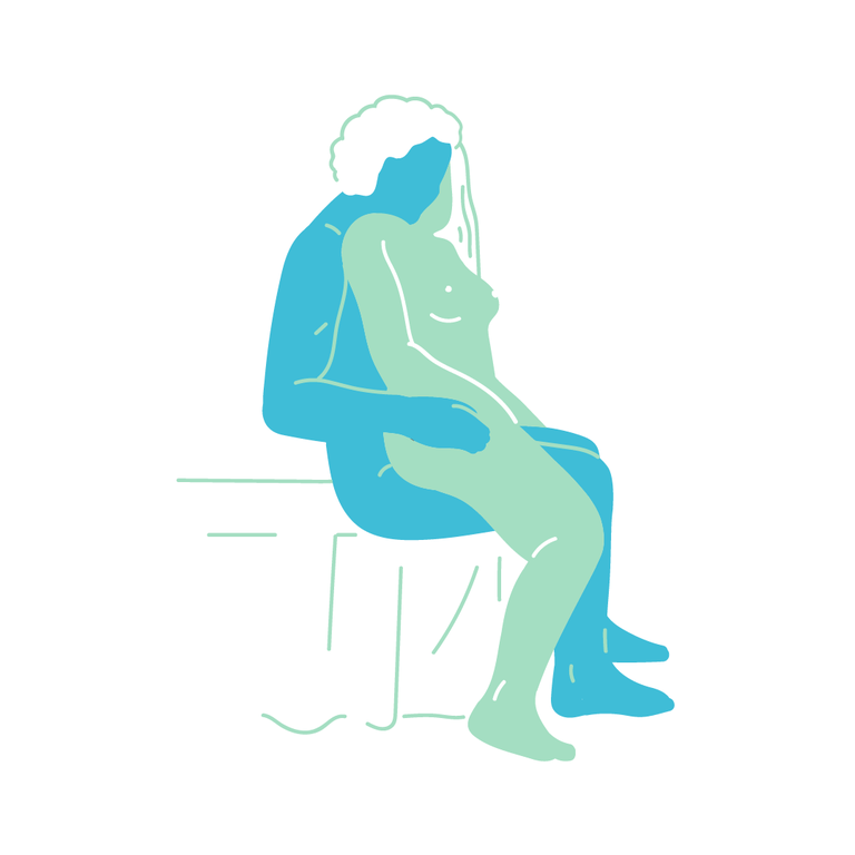Skyler recomienda llevar esta a la encimera de la cocina. "Es una gran posición si eres menos atlético pero aún así quieres ser variado y pervertido con el coito", dice. Esta loca posición sexual los pone a los dos al mismo nivel (lo cual es especialmente genial si son de diferentes alturas). Además, es perfecta para ese rapidito sexy de "te necesito justo en este segundo".