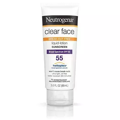 11 mejores lociones para todo tipo de pieles Clear Face Break-Out Free Liquid Lotion Sunscreen Broad Spectrum SPF 55