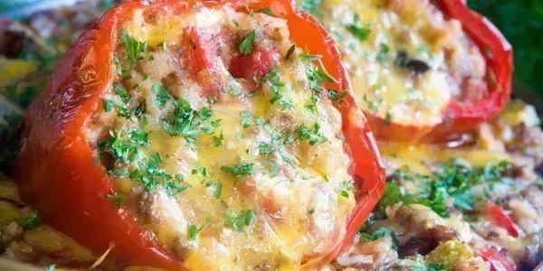Cómo se hace: Corta los pimientos por la mitad, retira las semillas y colócalos en una fuente de horno. Rellénalos con una mezcla de pollo desmenuzado, queso, sal y pimienta. Hornea durante 25 minutos a 425 ºF.