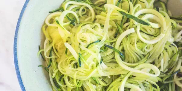 Los fideos de calabacín, o "zoodles", son una alternativa a la pasta baja en calorías y rica en fibra que también es una buena fuente de vitamina A. Normalmente puedes encontrar zoodles preenvasados en el supermercado o puedes hacerlos en casa utilizando un espiralizador.