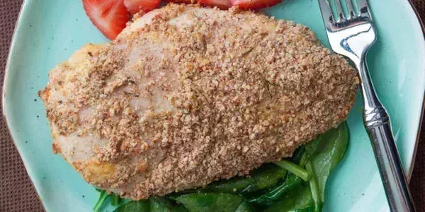 Cómo hacerla: Mezcla almendras molidas, sal, pimienta, ajo en polvo, cebolla en polvo y tomillo seco. Sumerge las pechugas de pollo en esta mezcla, luego en la leche y de nuevo en la mezcla. Dorar el pollo en una sartén engrasada hasta que se dore por cada lado y luego hornearlo durante 10 minutos a 400 ºF.