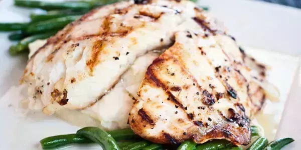 Cómo hacerla: Sazone las pechugas de pollo con aceite de oliva, vinagre balsámico, pimentón, azúcar moreno, tomillo, mostaza y sal. Deje marinar durante 20 minutos en el refrigerador y luego hornee a 375 ºF durante 15 minutos. Espolvoree el queso feta por encima.