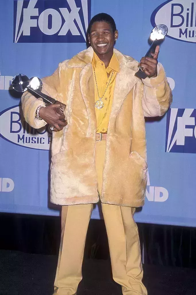 Los abrigos de piel sintética de colores eran un componente clave del estilo de los 90. Te mantendrán abrigada durante los meses fríos y darán a tu atuendo un toque atrevido. Te mantendrán abrigada durante los meses fríos y, al mismo tiempo, darán a tu atuendo un toque atrevido, como el conjunto amarillo de Usher en la novena edición de los Billboard Music Awards.