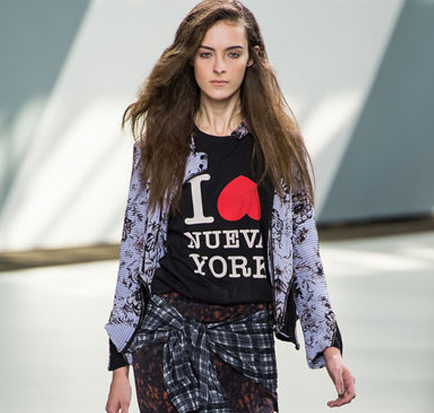 La colección nos parece increíblemente grunge, con incontables referencias a la década de los 90 y a toda la cultura musical y estética de esos años. Lo vemos en las camisas de cuadros anudadas a la cadera, las cazadoras anchas, las camisetas algo rotas, los minivestidos de flores, transparencias, tops y capas, muchas capas.