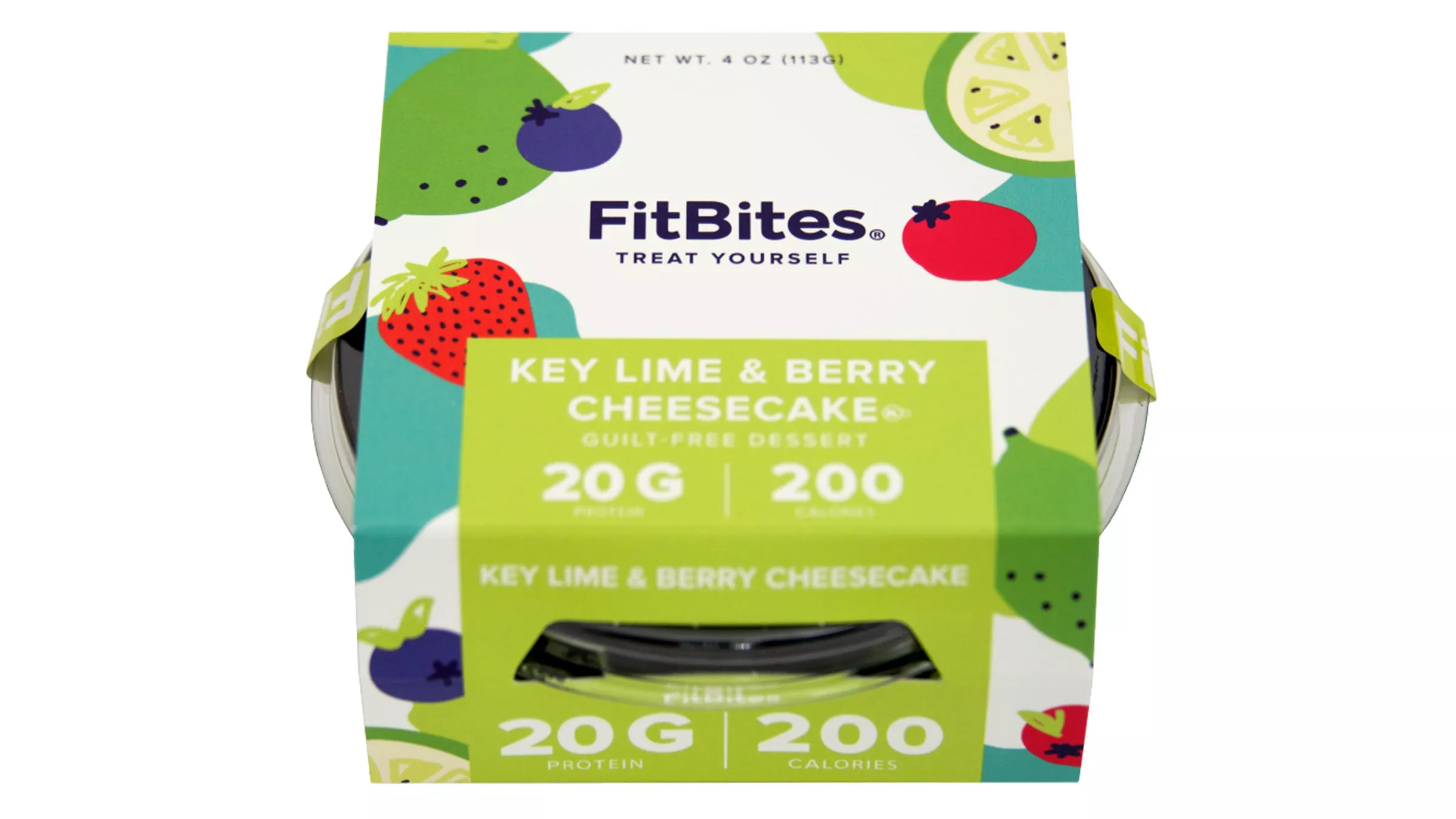 FitBites Key Lime & Berry Cheesecake Contiene 200 calorías y se disfruta como un cheesecake sin culpa y lleno de sol.