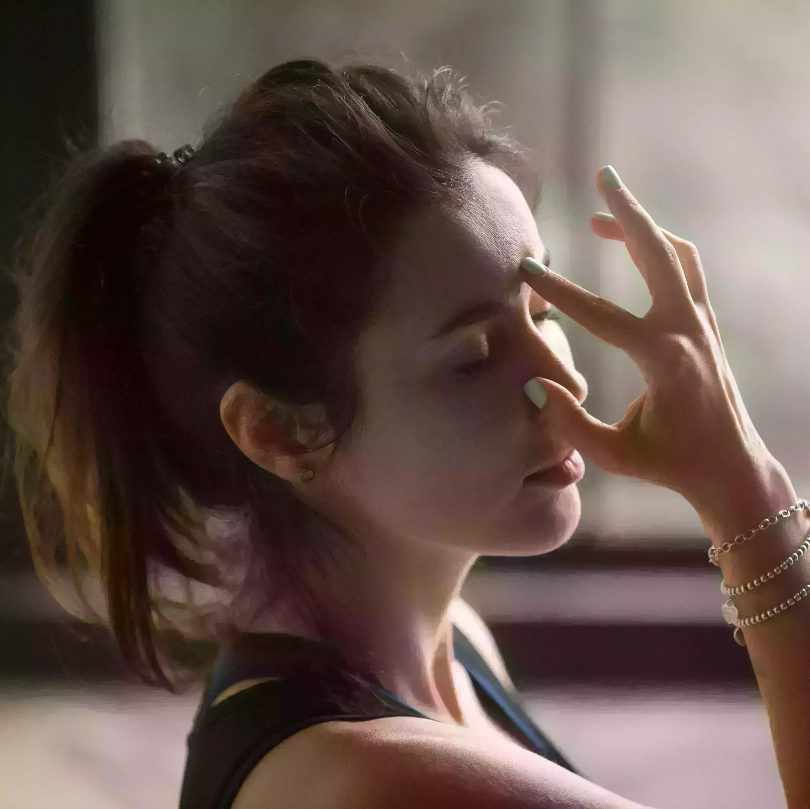 Los estudios sugieren que 20 minutos de respiración de yoga pueden levantar tu estado de ánimo e incluso mejorar tu memoria. Prueba esta técnica de alternancia de fosas nasales: Haz una L con el pulgar y el primer dedo de la mano derecha; respira profundamente; presiona el lado derecho de la nariz con el pulgar para bloquear la fosa nasal derecha; exhala; inhala por la fosa nasal izquierda; bloquea la fosa nasal izquierda y suelta la derecha; exhala; inhala. Cambia de lado y repite.