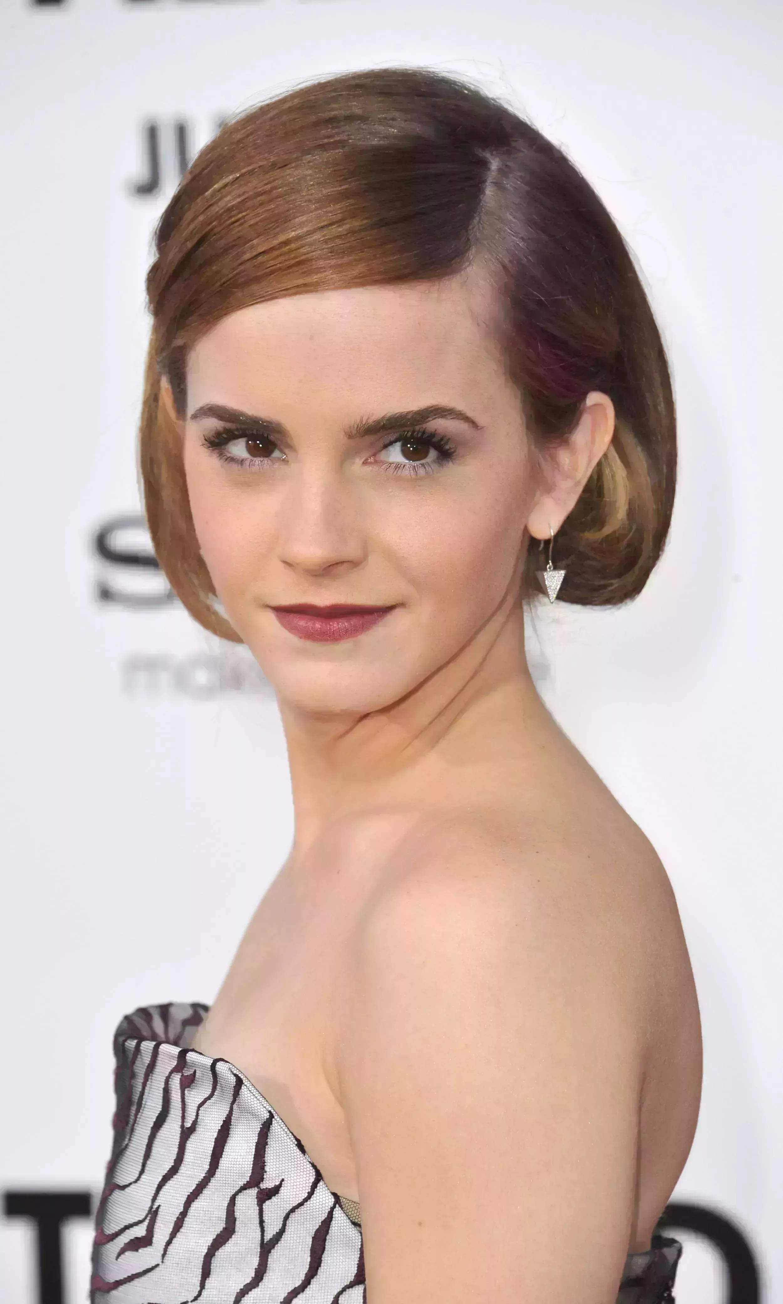 Bob rizado deEmma WatsonPuedes lucir este peinado de Emma Watson tanto si tienes el pelo largo como bob. Todo lo que tienes que hacer es rizar o recoger las puntas de tu cabello para crear la ilusión de un bob.