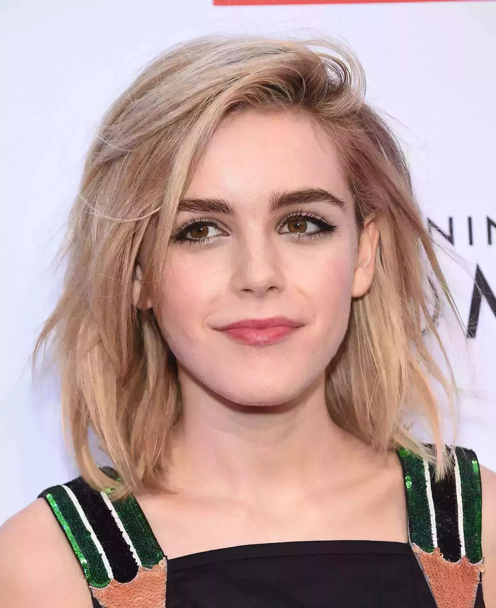 KiernanShipka es un excelente ejemplo de lo que las capas pueden hacer a un peinado más corto. Aportan mucho movimiento y el flequillo barrido a un lado añade un poco más a todo el look.