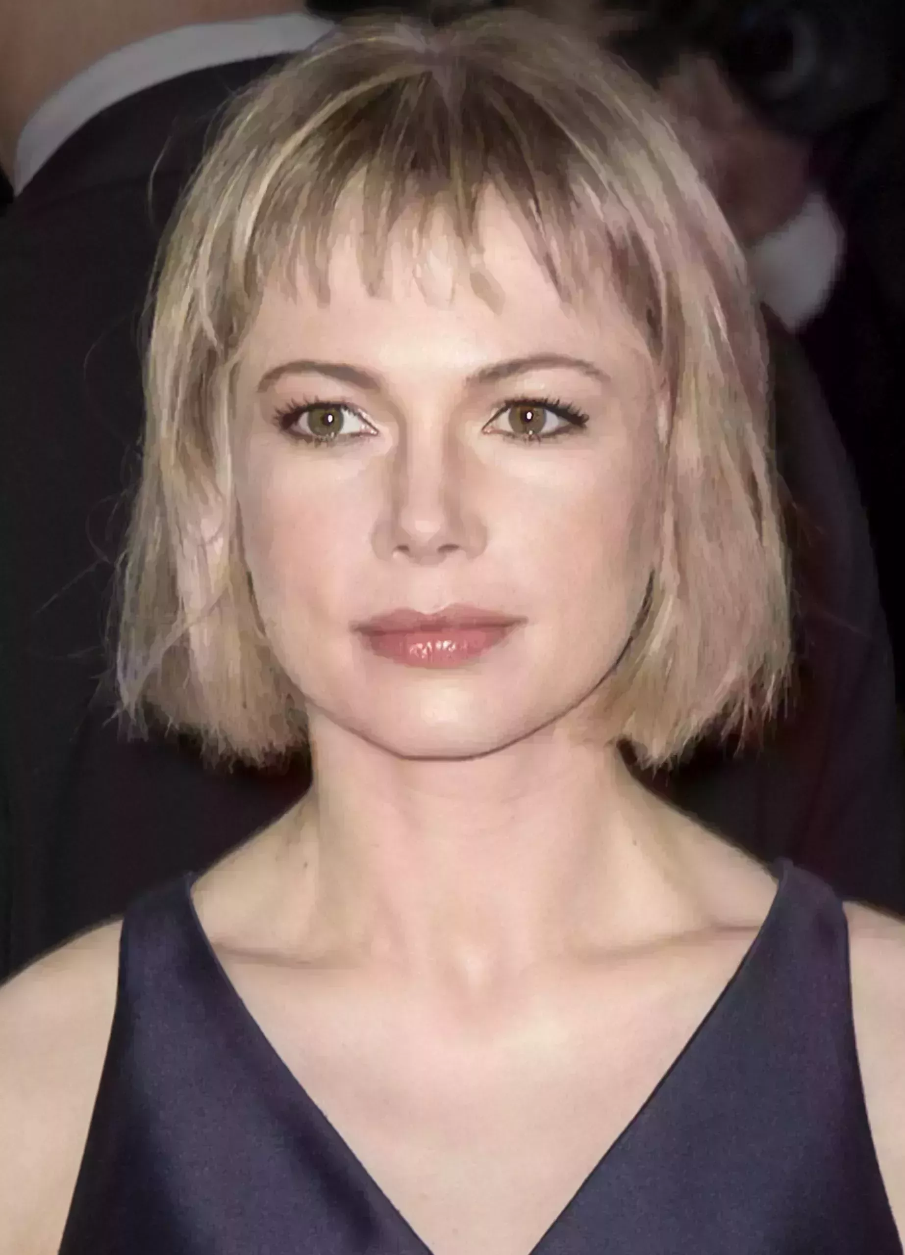 Michelle Williams Bob y flequilloligeroAdelantada a su tiempo, Michelle Williams ya llevaba el flequillo corto súper de moda allá por 2016. Las tendencias van y vienen y ella definitivamente se adelantó a esta al elegir combinarlo con un bob clásico hasta la barbilla.